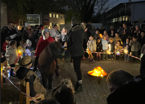Am Montag, den 03.11.2025, versammelten sich viele Eltern und Kinder des Familienzentrums Lohberg, um gemeinsam den Martinstag zu feiern. Begleitet von einem kleinen, tapferen Sankt Martin auf seinem Pony zogen die Familien mit bunt leuchtenden Laternen durch die Straßen von Lohberg.