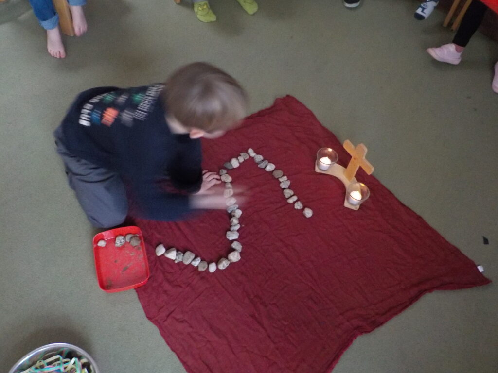 Am Aschermittwoch haben wir im Morgenkreis des Evangelischen Familienzentrums Rönskenhof, Teil der Evangelischen Kinderwelt Dinslaken, über die Bedeutung von Aschermittwoch und der Fastenzeit gesprochen. Anschließend haben wir die Geschichte „Jesus in der Wüste“ mithilfe des Sandtischs erzählt. Die Kinder hatten viele Ideen, worauf sie selbst verzichten könnten.