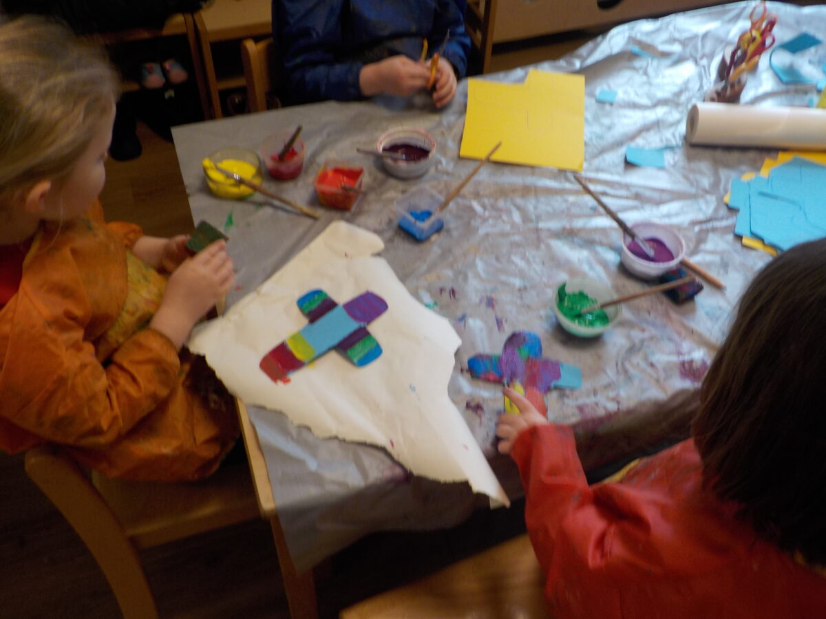 Als Zeichen für das Ende der Faschingszeit und den Beginn der Fastenzeit haben wir Luftschlangen verbrannt. Wer wollte, durfte sich mit der Asche ein Kreuz auf die Stirn malen lassen Anschließend konnten die Kinder ihr eigenes Kreuz basteln und gestalten.