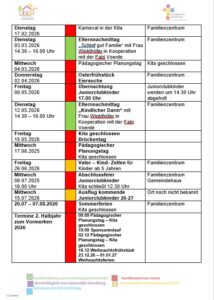 - Vereinbarkeit von Familie und Beruf (Bei Bedarf vermitteln wir auch Kindertagespflegeangebote.)