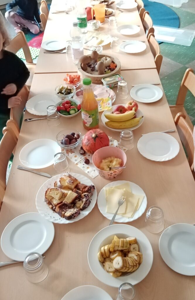 Am 10. Oktober 2025 haben es sich die Kinder im Ev. FZ Möllen der Ev. Kinderwelt im Ev. Kirchenkreis Dinslaken bei einem reichhaltigem Erntedankfrühstück richtig gut gehen lassen. Anschließend kam unser Pfarrer Rüdiger Penczek und wir haben gemeinsam Erntedankgottesdienst in der Turnhalle gefeiert. Die Neugier, was „Rüdiger“ wohl in seinem geheimen Koffer dabei hat, war erneut sehr groß.