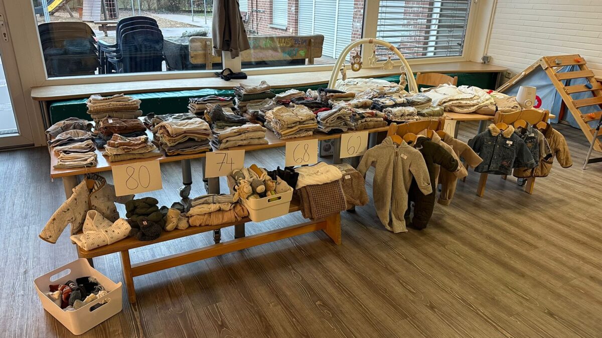 Am Samstag, den 31.01.2026, fand in der Zeit von 10:00 Uhr bis 13:00 Uhr unser „Flohmarkt rund ums Kind“ statt. Wo? Im Ev. Familienzentrum Brücher Spatzennest – Trägerschaft Ev. Kinderwelt Dinslaken. Zwölf Familien hatten sich bereits im Vorfeld angemeldet und mit viel Engagement ihre Verkaufsstände mit Kleidung und Spielmaterial vorbereitet. Hierbei begrüßten wir jedoch nicht nur Familien aus unserer Kita. Auch weitere Familien sind auf unser Angebot aufmerksam geworden und haben sich hierfür telefonisch angemeldet.