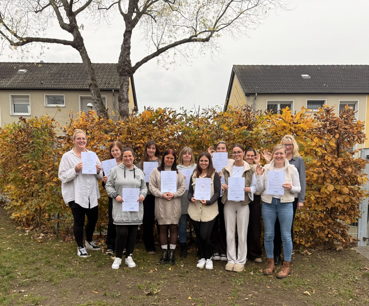 Wir, das Team des FZ Fröbelstraße, Teil der Ev. Kinderwelt im Ev. Kirchenkreis Dinslaken, konnten in diesem Jahr an zwei umfassenden Fortbildungstagen zum Thema „Mit Händen sprechen – Babysignale und Gebärden für Kleinkinder“ teilnehmen. Zunächst wurde das Grundseminar, anschließend das Aufbauseminar absolviert. Mit Abschluss dieser Qualifizierung erhält unsere Einrichtung nun das Qualitätssiegel, das den professionellen Einsatz von Gebärden in der Arbeit mit Kindern im Alter von 0 bis 6 Jahren auszeichnet.