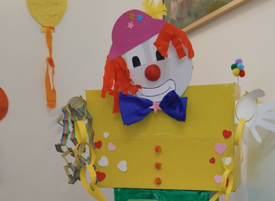 Am Veilchendienstag feierten wir mit den Kindern das Karnevalsfest. Schon im Vorfeld wurde viel gemalt, geklebt, geschnitten und dekoriert, sodass alles bunt und fröhlich geschmückt war.