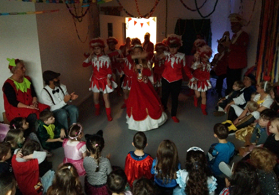 Ein besonderes Highlight war der Besuch der Kinder-Karnevalsgarde aus Wehofen. Mit Helau, Gesang und Tanz begeisterte die Garde die Kinder und brachte alle in Feierlaune.