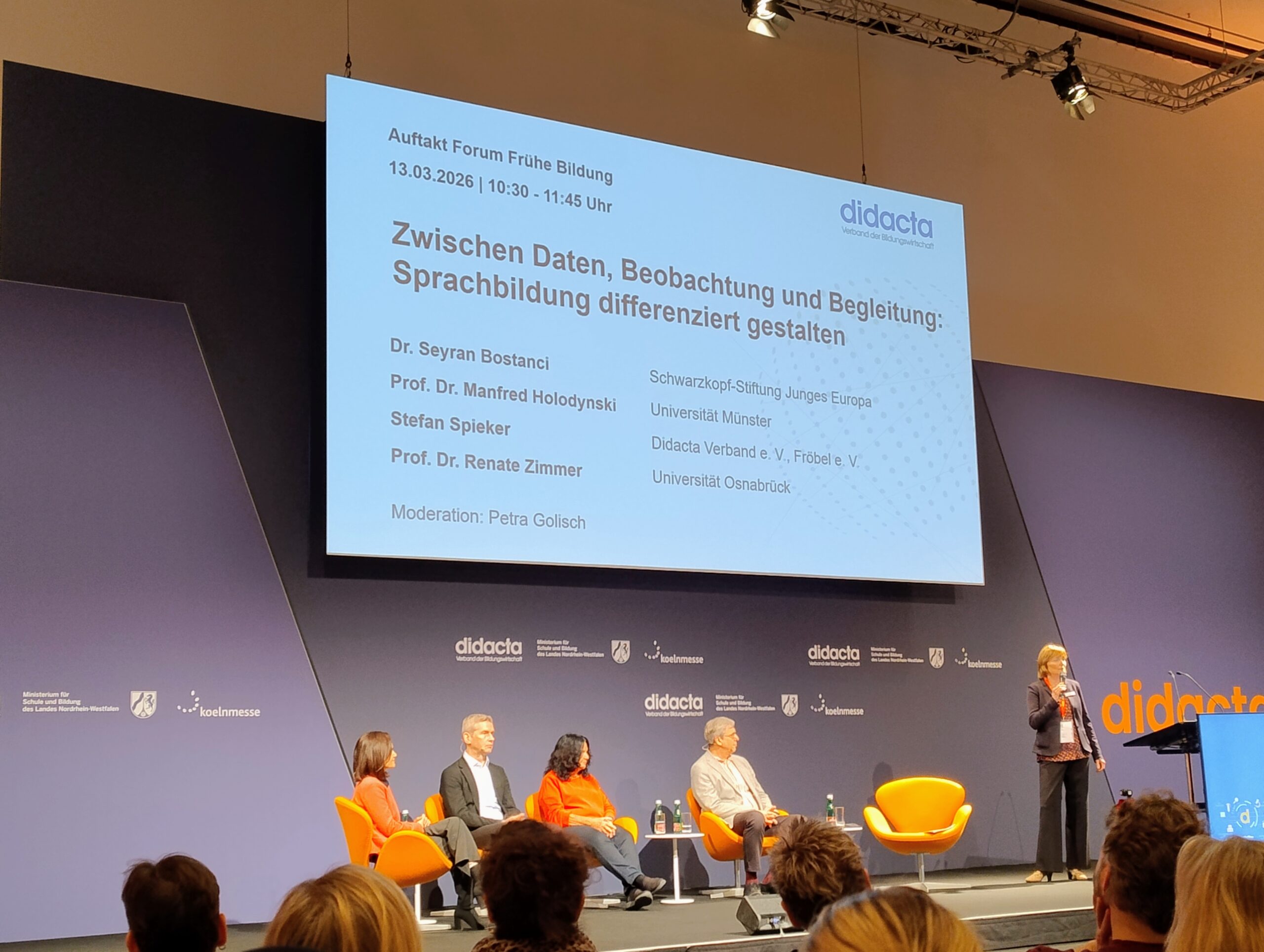 Ein besonderes Highlight war für uns die Podiumsdiskussion „Zwischen Daten, Beobachtung und Begleitung – Sprachbildung differenziert betrachten“. Hier wurde deutlich, wie wichtig eine sensible und differenzierte Beobachtung und Dokumentation von Sprachentwicklungsprozessen ist und wie Fachkräfte Kinder in ihrer individuellen sprachlichen Entwicklung begleiten können. Spannend war es, Frau Prof. Dr. Renate Zimmer zu hören. Sie begleitet unsere Arbeit schon seit vielen Jahren – sowohl durch ihre Fachbücher als auch durch ihre Tätigkeit als Referentin und als wichtige Impulsgeberin für die frühkindliche Bildung. Ihre Perspektiven und Erfahrungen haben uns erneut dazu angeregt, den Blick auf Bewegung, Entwicklung und ganzheitliche Bildung weiter zu schärfen.