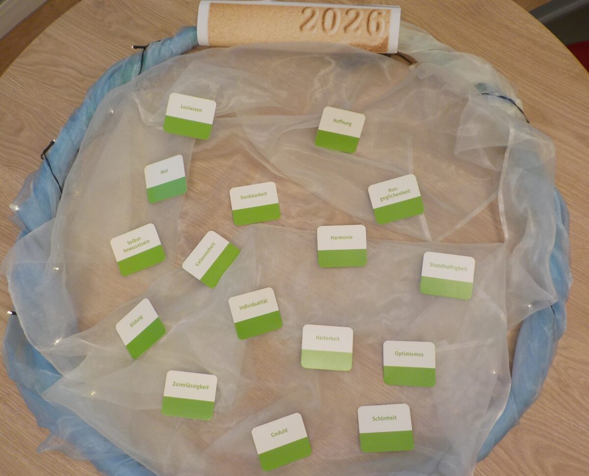 Aus einer großen Vielfalt an Wertekarten konnten bis zu drei ausgewählt und in der Mitte platziert werden – als Symbol für das gemeinsame Jahr 2026. Besonders berührt hat die Offenheit und Ehrlichkeit aller Mitarbeitenden, mit der sie ihre sehr persönlichen Statements zu den gewählten Werten geteilt haben. Dabei wurde deutlich, wie viel Vertrauen und gegenseitige Wertschätzung das Team verbindet.